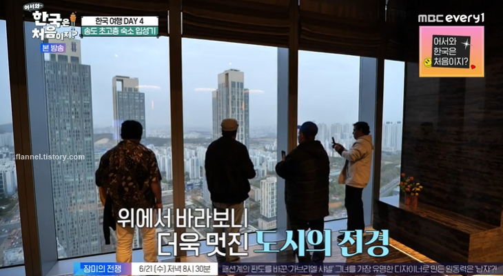 '어서와 한국은 처음이지' 멕시코 아버지들이 인천 송도를 찾았어요. 이번 숙소는 인천에서 가장 높은 건물의 호텔이라고 하는데요. 로비가 36층에 있더라고요. 창밖으로는 인천의 완벽한 시티뷰가 펼쳐지네요.