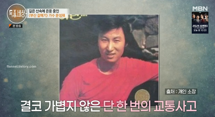 '부산 갈매기'가 대박이 났을 때 문성재는 돈 걱정 없이 살 수 있을 만큼 행사가 많이 들어왔대요. 하지만 영광은 오래가지 않았죠. 31세 나이에 돌연 교통사고가 난 것.