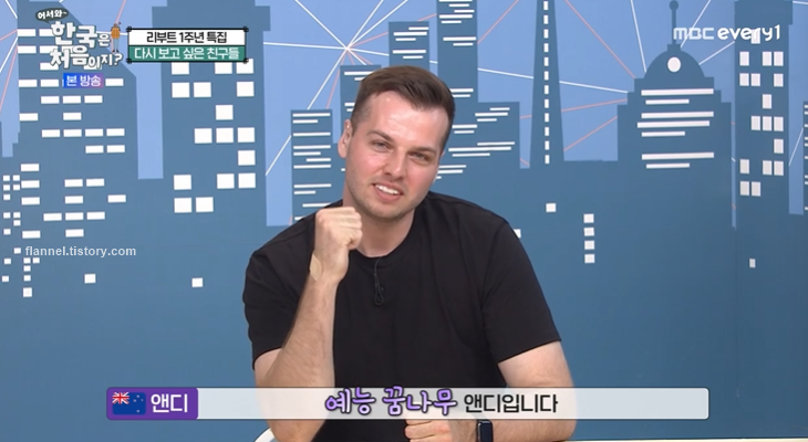 '어서와 한국은 처음이지?' 뉴질랜드 형제들이 다시 한번 한국을 찾았어요. 앤디 형제들은 지난해 8월 한국을 방문, 3.5% 최고 시청률을 기록하며 시청자들에게 사랑받은 바 있죠. 현재 직업 고등학교 영어 선생님인 호스트 앤디는 방송 이후 서울대 어학원에 들어가 한국어를 배우고 있다고 하네요.