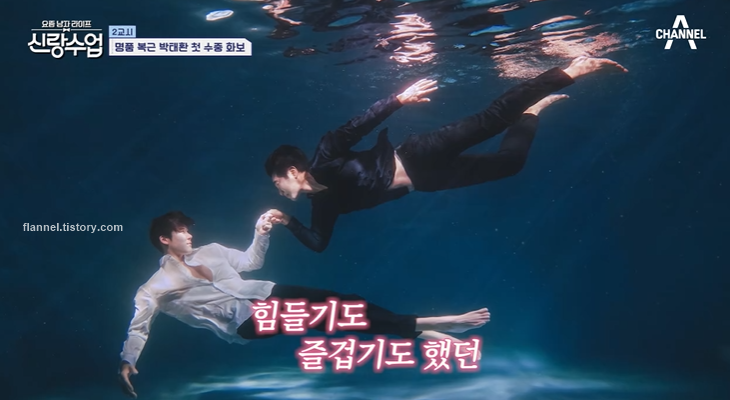 '신랑수업' 박태환이 수중 화보에 나섰어요. 수중 사진을 전문적으로 찍는 수중 스튜디오가 따로 있더라고요. 샘플 사진들이 나왔는데 단독 사진은 물론 커플 화보로도 많이 찍나 봐요.