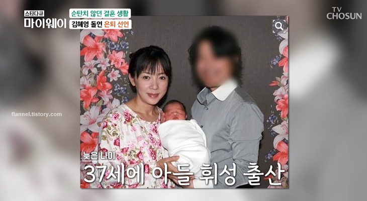 앞서 2002년 김혜영은 당시 군의관이었던 성형외과 의사와 결혼했지만 3년 만에 이혼했어요. 난생처음 겪는 이별에 김혜영은 무척이나 힘든 시간을 보냈다고 하네요. 그때 두 번째 남편이 따뜻하게 위로해 줬고 금방 사랑에 빠져버렸대요. 두 번째 남편은 배우 김필(김성태)이었는데 2009년 속도위반으로 재혼하게 됐대요. 그렇게 37세 나이에 아들 휘성을 출산한 김혜영.