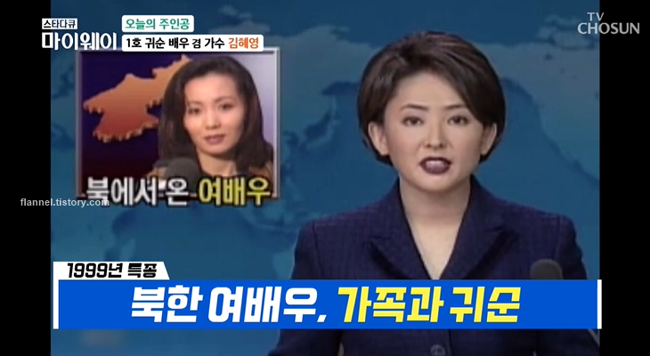 가수 겸 배우 김혜영이 '스타다큐 마이웨이'에 출연해 근황을 전했어요. 김혜영은 북한에서 실제 여배우를 하던 인물로 귀순해 한국에서는 1호 귀순 배우로 화제에 오른 바 있죠. 이날 김혜영은 세 번의 이혼을 겪은 아픔을 털어놔 눈길을 끌었어요.
