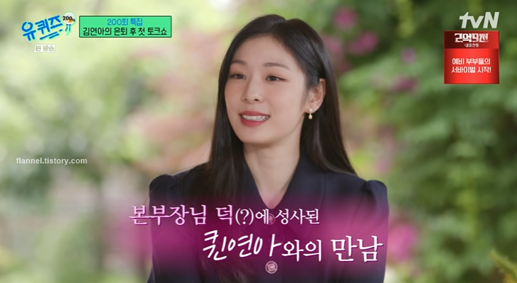 '유 퀴즈 온 더 블럭' 200회 특집에 김연아가 출연했어요. 이날 김연아는 먼저 고우림과의 결혼에 대해 언급했는데요. 앞서 고우림은 먼저 '유퀴즈'에 출연한 바 있어요. 당연히 모니터링했다는 김연아는 좋은 프로그램에 포레스텔라가 출연해 많은 분들께 알리는 계기가 된 것 같아 너무 좋았다고 밝혔어요.