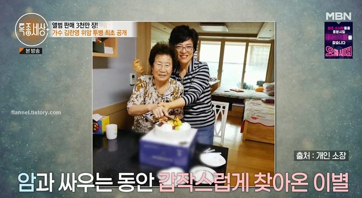 김란영 어머니는 김란영이 암 수술을 한 지 두 달 만에 세상을 떠났다고 해요. 작년에 어머니 연세가 무려 102세였다고 하네요. 남들은 호상이라고 하지만, 자식들 입장에서 호상은 없대요. 뭔가 더 해드렸으면 했는데 코로나 때문에 돌아가셨대요.