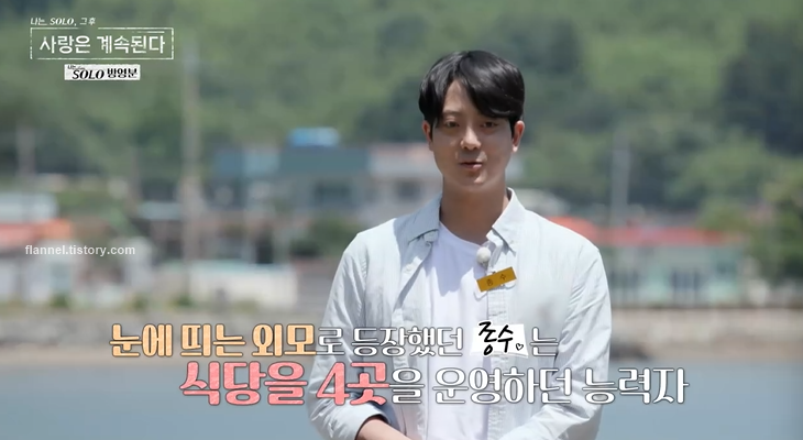 두 번째 출연자는 2기 종수예요. 눈에 띄는 외모로 주목받았던 종수 직업은 식당 4곳을 운영하고 있어요. 나솔사계 시즌1때 4기 정숙과 소개팅도 했었는데 잘 안 됐었죠.