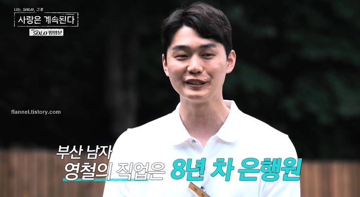 나는 솔로 11기 영철도 등장했어요. 영철 직업은 8년 차 부산은행 은행원. 당시 순자와 최종 커플이 됐었는데 현실에서는 이어지지 않았다고 하네요. 잘생긴 외모와 목소리로 화제였는데 여전히 멋있으시네요. 인기에 힘입어 은행 내 입간판에도 등장했다고. 연초에 지점도 옮기고 학교도 가다 보니 바빠서 연애를 못했대요.