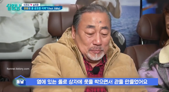 한 방송에서 정동남은 집안이 너무 가난했기 때문에 동생의 관조차 마련할 수 없었다고 고백했어요. 결국 사과 상자에 돌로 못을 박아 만든 관에 동생을 넣을 수밖에 없었죠. 그때부터 지금까지 약 50년 동안 구조 활동에 매진했다고 해요. 동생을 구하지 못한 죄책감이 한이 됐다고..