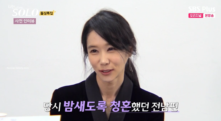 직업 : 서양화가. 세 번째 본 날 전남편과 결혼. 당시 전남편이 밤새도록 청혼하고 집안에서까지 결혼 밀어붙임. 두 달 만에 초스피드 결혼.