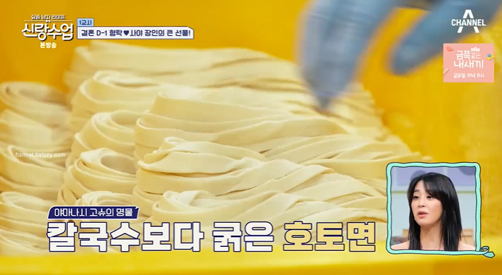 이날 심형탁은 장인어른, 장모님, 사야 언니, 형님까지 모두 만나고 왔어요. 특히 사야 아버지 직업이 공개됐는데 면 공장을 운영하고 있다고 하네요. 무려 4대째 이어오는 가업이래요. 공장이 120년 됐다고. 기본 반죽부터 면 뽑기, 포장까지 다 이루어지는데 야마나시 고슈의 명물인 칼국수보다 굵은 호토면을 생산하고 있어요. 직원 수도 꽤 많고 규모가 있더라고요. 이번 일본 결혼식 비용도 장인어른이 모두 부담해 줬대요.