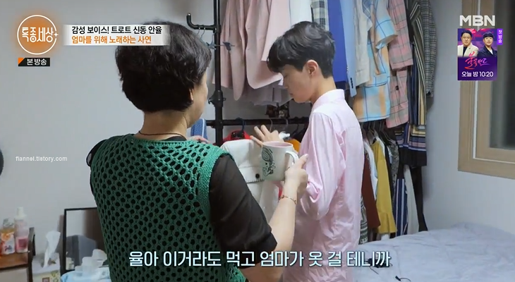 밤늦게 율이 스케줄이 끝나고 숙소에 들어온 두 사람. 인천이 본가이고 숙소가 또 따로 있다고 하네요. 아들의 꿈을 위해 기꺼이 엄마는 숙소 생활을 선택했대요.