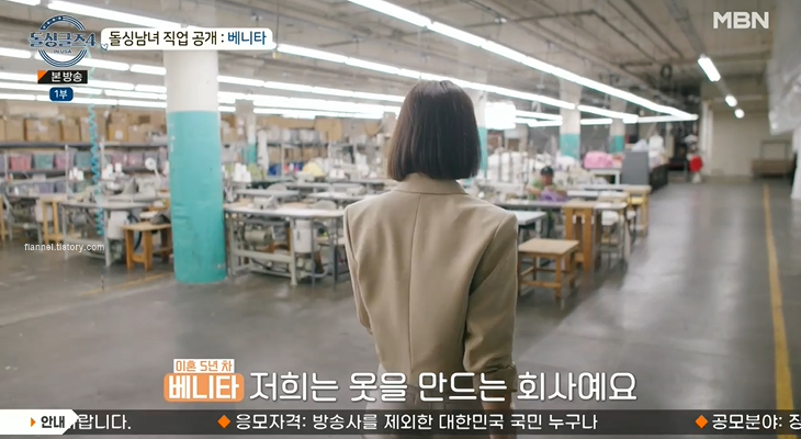 베니타는 의류 제조 관리 매니저로 일하고 있어요. 부모님이 의류 생산 공장을 운영하고 베니타는 제조 과정 쪽을 관리하고 있다고 하네요. 쉽게 말해 옷 만드는 일을 하고 있다고. 원단 구매부터 재단, 재봉 등 의류 제적 전 과정을 총괄한대요. 부모님 공장도 나왔는데 규모가 꽤 크더라고요.