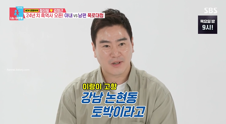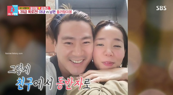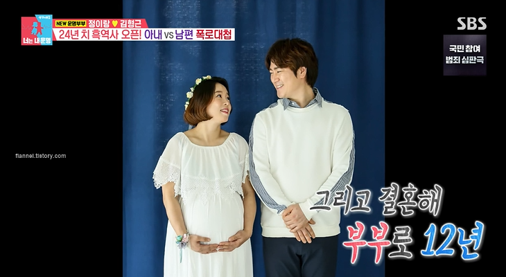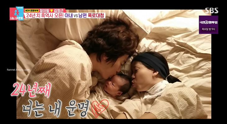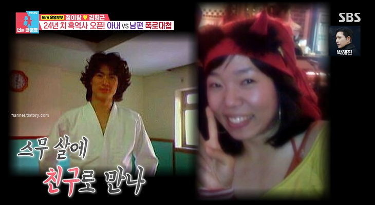 첫만남도 궁금한데 정이랑은 아르바이트를 구하러 고깃집에 갔다가 남편을 처음 만났대요. 남편도 알바생이었는데 긴 머리가 테리우스 같았대요. 정이랑은 첫눈에 반했다는데 남편은 정이랑의 못생긴 얼굴에 놀랐다고 하네요.. 김형근은 고향이 부산이라 강남 여자에 대한 환상이 있었기 때문이래요. 정이랑이 강남 논현동 토박이라는 걸 알고 난뒤에는 고급스러운 매력이 보면 볼수록 보였대요. 그래서 친구로 지내다가 23살부터 연인으로 발전, 10년 간 연애했대요.