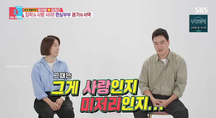 그런데 김형근은 정이랑이 쿨한거 같아 연애했는데 섬뜩한 모습을 발견하고 놀랐대요. 어느날 자고 일어났는데 핸드폰에 여자 연락처만 싹 다 삭제돼 있었다고 하네요. 그리고 싸워서 김형근이 연락을 안 받으면 김형근 친구들에게 전화를 100통씩 하기도 했대요. 그때는 그게 사랑인지 미저리인지 헷갈렸대요.