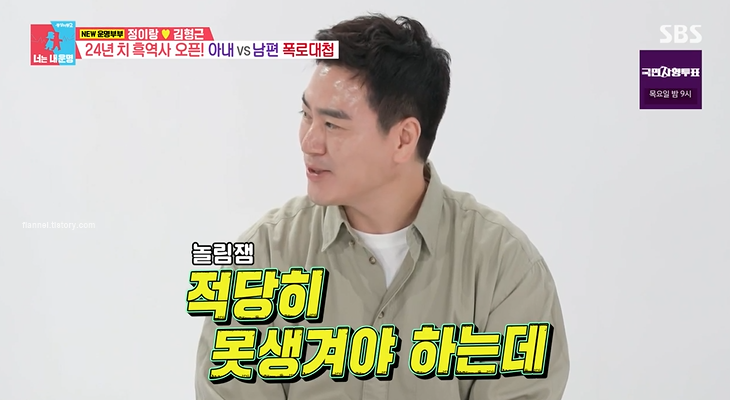그런데 불같이 싸웠다가 또 뜨겁게 사랑하는 부부 ㅋㅋㅋㅋㅋ 일상이 시트콤 같아요 ㅋㅋㅋ 냄비부부 맞네요. 싸워도 돌아서면 잊어버리는 스타일이래요. 싸움이 며칠동안 간 적은 한 번도 없다고 하네요. 무엇보다 부부가 스킨십이 많더라고요. 서로 틱틱거려도 서로를 아끼고 위하는 게 보여요. 남편 취미가 아내 덕질하는 거라고.