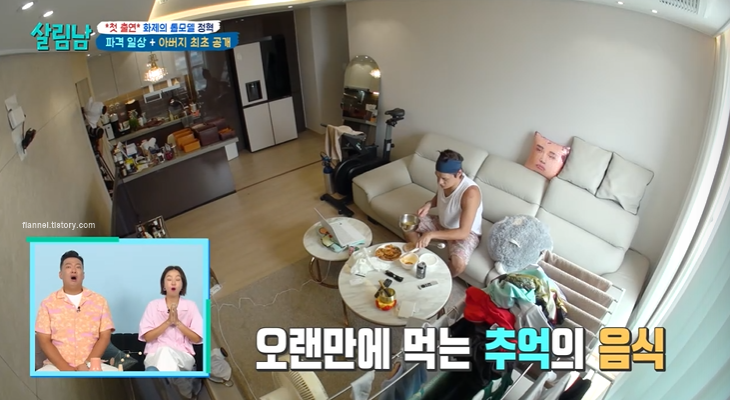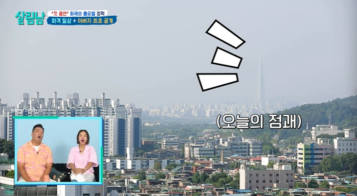 모델 정혁이 '살림남'에 새롭게 합류했어요. 이날 정혁은 구리에 위치한 자신의 집은 물론 아버지에 대한 가슴 아픈 이야기로 눈물 흘리기도 했는데요. 구리 집은 반지하에서만 살던 정혁이 열심히 돈을 모아 마련한 집이래요. 전세인지 매매인지는 나오지 않았어요. 포 베이로 구성됐는데 층수가 높은지 경치도 좋더라고요. 저 멀리 롯데타워도 보이는.