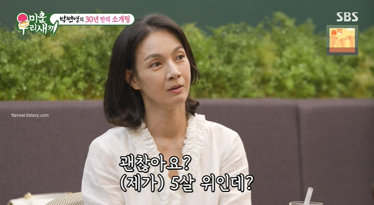 박선영은 소개팅남에게 나이에 대해 조심스럽게 묻기도 했어요. 아무래도 자신이 5살 더 많다는 거에 소개팅남이 어떻게 생각하는지 궁금했나 봐요. 소개팅남은 좋아하는 사람이 나이가 많았을 뿐이라는 대답을 해 박선영을 미소 짓게 했죠.
