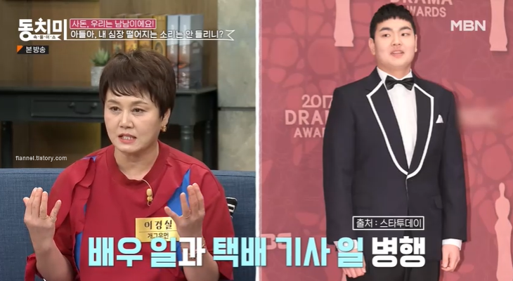 처음 이경실은 아들이 아기를 가진 걸 못마땅해했대요. 군대도 안 다녀온 23살에 직업도 딱히 없었기 때문. 당시 손보승은 배우 일을 하며 야간 택배 기사 일도 병행하고 있었대요. 그런데 새벽 배송 후 잠을 잘 수 없었던 손보승은 이경실에게 부천에 방을 얻고 싶다고 했대요. 아들이 걱정됐던 이경실은 방 얻는 걸 허락했대요.