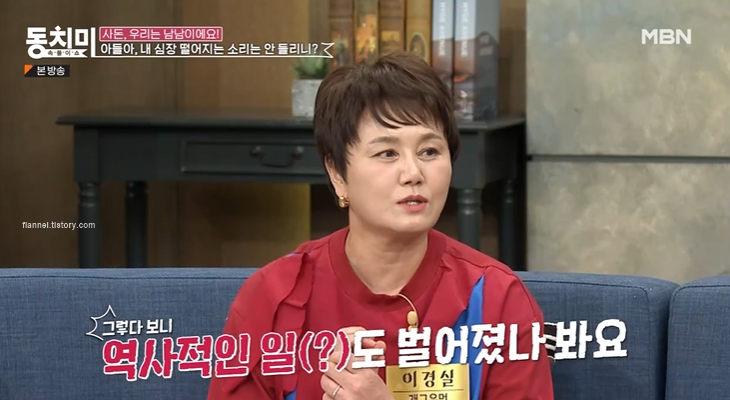 '속풀이쇼 동치미' 이경실 근황이 전해졌어요. 이날 이경실은 혼전임신으로 아이를 출산한 아들 손보승과 며느리에 대해 언급해 눈길을 끌었는데요.