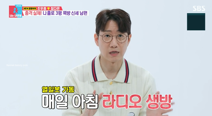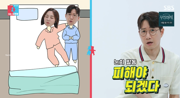 둘은 처음에는 한 침대에서 같이 잤었대요. 하지만 각방을 쓰게 된 이유가 아내가 굴러다니면서 자서 피하다가 침대에서 떨어진 적이 있대요. 건드리면 잠을 깰까 봐 눈치를 봤고 그러다 보니 수면의 질이 뚝 떨어졌대요. 그래서 협의 하에 각방 살이를 시작했다고 하네요. 라디오 하기 전부터 따로 잤대요.