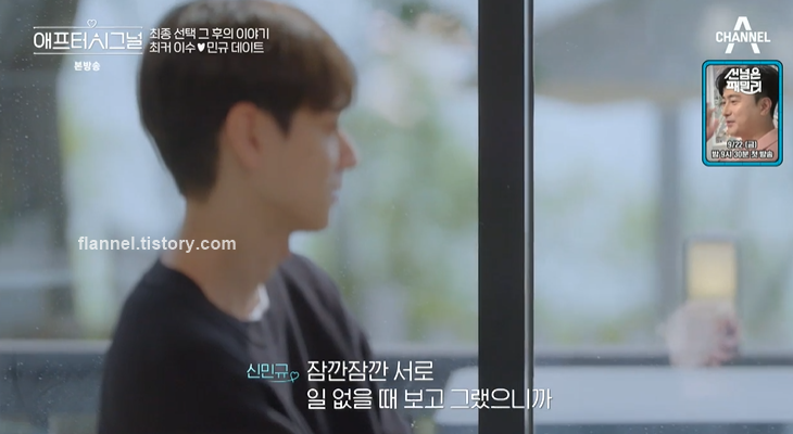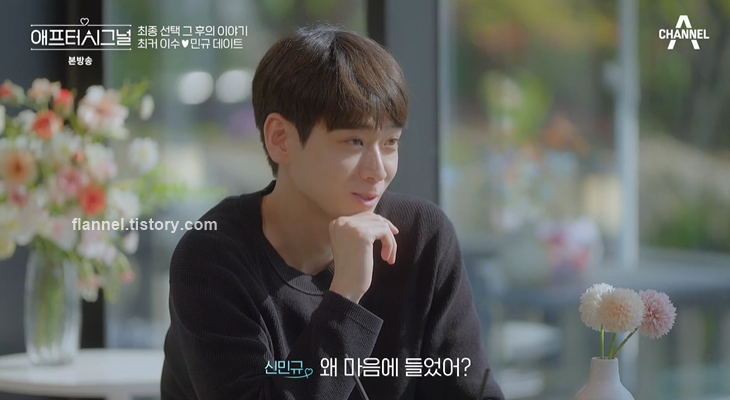 이수는 민규가 집돌이일줄 알고 실제로 만나면 성향이 달라 안 맞을 거 같다 걱정했대요. 그런데 민규가 누구보다 시그널 하우스 사람들이랑 자주 만나고 표현도 자주 해서 놀랐대요. 얘기하면 얘기할수록 빙구미?도 있고 허당기도 있고 애니 좋아하는 것도 닮아서 좋다고 하네요.