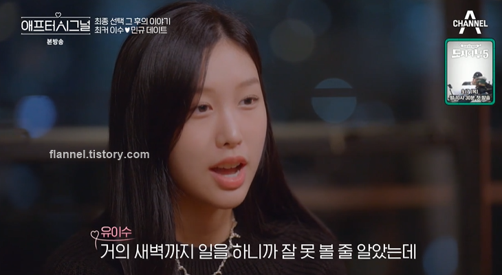 "일이 되게 바빴어요. 주말 토요일, 일요일까지도 다 출근해야 했고 퇴근하고 한 시? 이때쯤에 편의점 앞에서 30분 정도 본 적도 있고. 최종 커플이 나오기 전까지는 밖에서 커플인 것처럼 보이면 안 되잖아요. 또 너무 사람들한테 보이면 안 되니까 심야 식당 같은 데 가서 구석에서 잘 안 보이는 자리에서 잠깐씩 만나고. 일주일에 한 네다섯 번?"