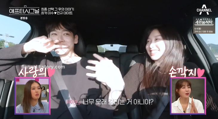"민규 오빠의 컨설팅이라는 직업이 너무 거의 새벽까지 일을 하니까 잘 못 볼 줄 알았는데 시간 날 때는 거의 다 만난 것 같아요. 최대한 제일 많이 만나려고 오빠도 노력해 주고 저도 노력하고. 자주 만나긴 자주 만났죠"