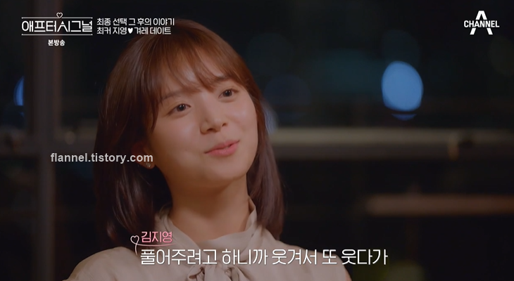 사실 방송 시작 전에 지영은 남자친구가 있다더니, 밀가루 알레르기가 뻥이라니 하는 여러 루머들이 떠돈 바 있어요. 이에 대해 지영은 꽤 힘들었다며 속내를 털어놨어요. 하지만 이내 한겨레가 자신의 편을 들어준 이야기를 하며 얼굴에서 미소가 떠나지 않더라고요. 한겨레 때문에 많이 웃고 그러면서 잊고 환기되고 그랬대요. 같이 안타까워해 주니까 진심이 느껴져서 큰 위안이 됐다고 하네요.