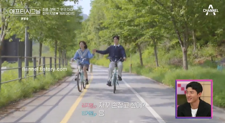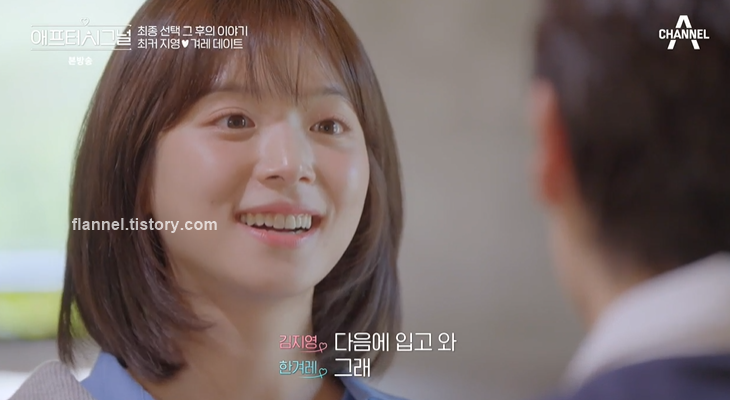 '하트시그널 시즌4' 김지영, 한겨레의 데이트 장면이 전해졌어요. 두 사람은 만나자마자 손깍지부터 껴서 보는 이들의 설렘을 유발했는데요. 김지영은 하트시그널 촬영 이후 미국 여행을 다녀왔대요. 그때 오면서 한겨레 티셔츠를 사다 줬대요. 이날 그 티셔츠 안 입고 왔다고 뾰로통한 지영. 둘이 너무 잘 어울려요!