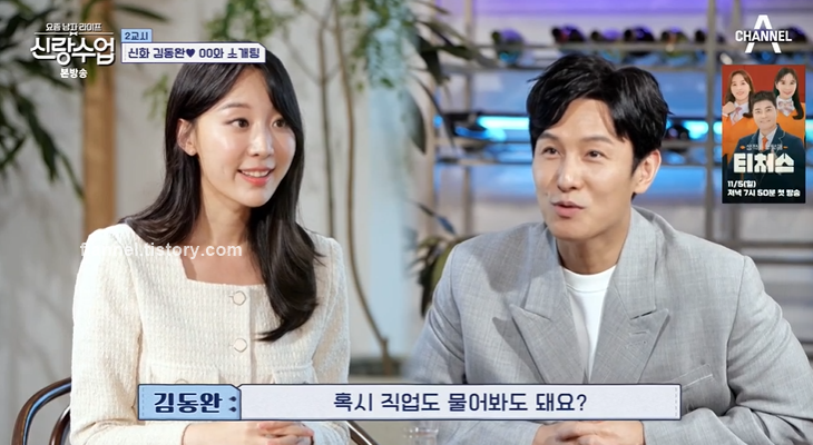 '신랑수업' 김동완이 소개팅에 나서 눈길을 끌었어요. 소개팅녀는 눈웃음이 매력적인 유주연이었는데요. 토익 만점자라서 김동완이 관심이 많아 보이더라고요. 이번에도 장영란 주선 소개팅.