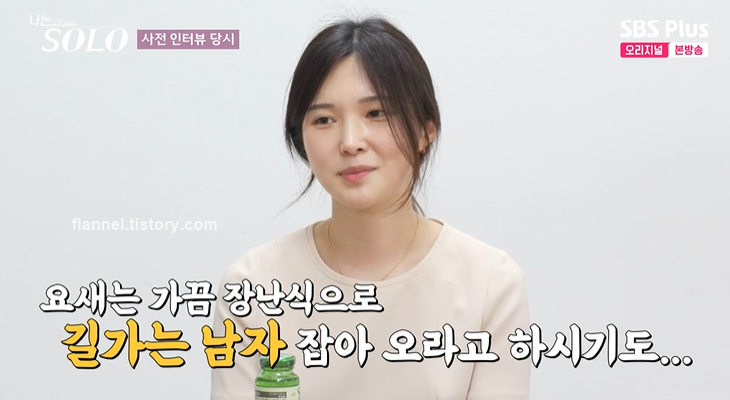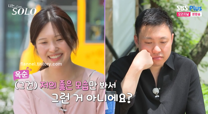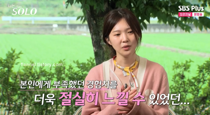 뭔가 옥순은 솔로나라 와서 자신의 삶을 돌아보게 되었나 봐요.가족들끼리만 있다 보니 개인 시간도 없었을 거고, 힘들 때 털어놓을 사람 또한 부족했지 않을까.