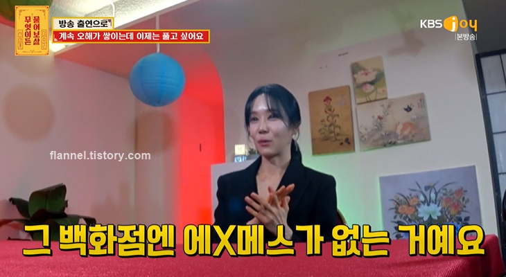 또 하나의 억울한 일화를 밝힌 옥순. 오랜만에 백화점에서 친구를 만났는데, 에르메스를 선물해줬대요. 그런데 그 백화점에 에르메스 브랜드가 없었다고 하네요. 그랬더니 사람들이 허세를 부리려고 쇼핑백만 들고 다닌다고 악플을 달았대요.