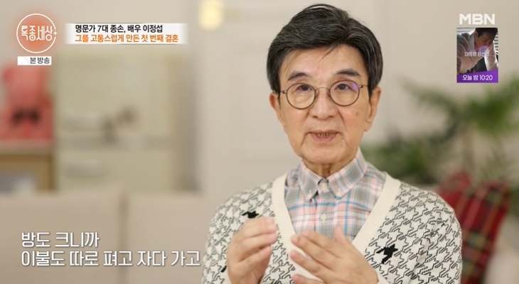 종손이 아니었다면 평생 독신으로 살았을거라는 이정섭. 집에서 25살부터 결혼하라고 재촉했대요. 그렇게 첫번째 결혼을 하고 신혼여행도 4박 5일 갔다왔는데.. "둘이서 생물학적으로 그대로였어요. 우린 동물이 아니니까. 방도 크니까 이불도 따로 펴고 자다 가고"