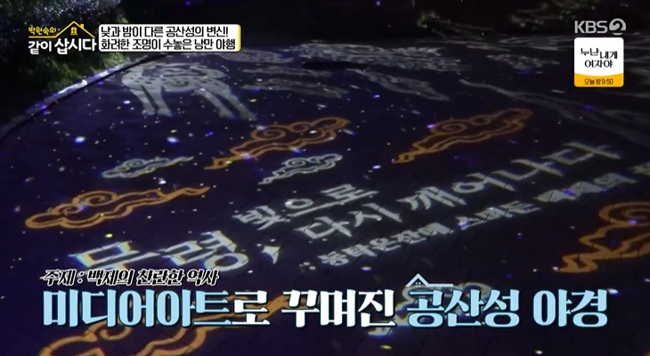 '박원숙의 같이 삽시다3' 공산성 낭만 여행이 전해졌어요. 웅장했던 낮과 달리 밤에는 화려한 미디어아트로 길부터가 예술이더라고요. 다양한 동물들이 나타나서 아이들도 너무 좋아할 것 같아요.
