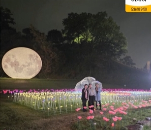 보름달과 장미꽃 조명도 정말 작품이네요. 화려해요. 저렇게 사진 남기면 정말 아름다울 듯!
