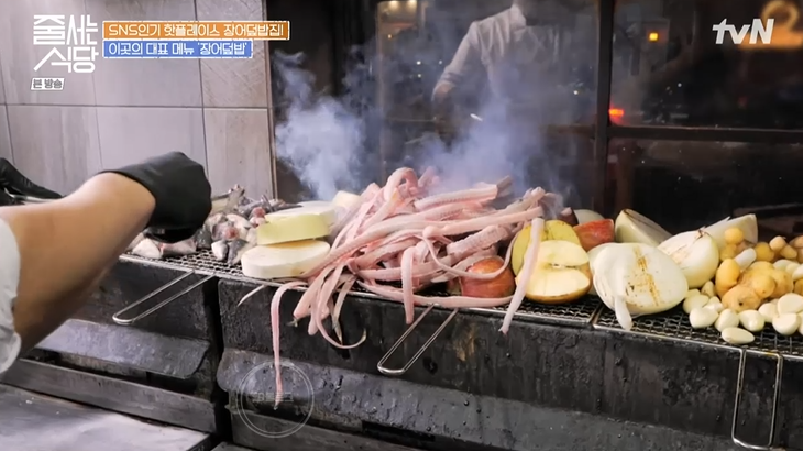 드디어 음식이 나왔어요. 매일 풍천장어를 직배송받는대요! 싱싱한 장어들을 꼬치에 꽂아 숯불 향을 듬뿍 담아 구워내는 것이 포인트! 맛을 본 햇님이는 완벽한 숯불 향에 눈을 번쩍 떴어요. 박나래 또한 온몸으로 맛 표현을 하는, 장어 특유의 비린내가 하나도 없대요.