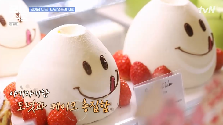 보는 것만으로도 소장욕구 올라오게 하네요. 쫄깃한 맛과 푹신한 크림!! 자막만 읽어도 미친 듯이 먹고 싶네요. 와플, 크루아상, 도넛 등 요즘 유행하는 빵들로만 구성했네요. 비비드한 식당 인테리어 또한 한몫하는 듯!