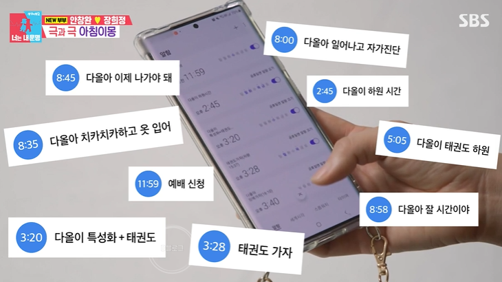 그리고 장희정 꼼꼼한 성격을 볼 수 있는 게 매일 10개 알람을 맞추고 생활한데요. 아이 스케줄에 맞춰져 있는.