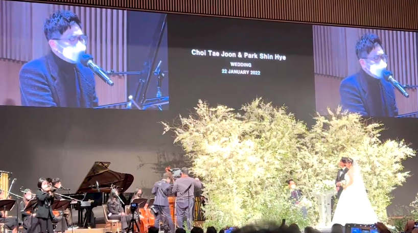 결혼식 장소는 서울 강동구의 한 교회라고 해요. 축가는 절친인 FT아일랜드 이홍기, 크러쉬와 엑소 디오, 이적이 했네요. 최태준 절친인 지코는 두 사람을 위해 편지를 낭독했어요. 이밖에 하객으로 이민호, 배정남, 이선빈, 손연재, 이동휘, 오상진, 황재균, 이특, 김명민, 이서진, 남궁민, 류준열, 남지현, 설현, 장근석, 김범, 유연석 등 수많은 스타들이 함께했네요.