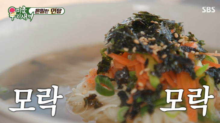 이곳은 자전거 타는 분들과 등산하는 분들이 자주 찾는 곳이래요. 주변에 등산코스가 있나 봐요. 맛을 본 두 사람은 첫 입에 감탄 연발! 잔치국수에 김치 올려서 한 입 먹고 싶네요. 국물이 기가 막힌데! 다 아는 맛이라 진짜 먹고 싶어요.