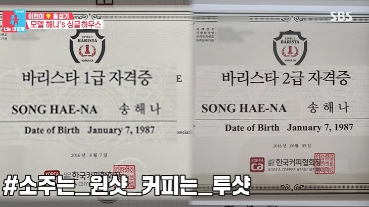 '동상이몽2 너는 내 운명'에 이현이, 홍성기 부부가 모델 송해나 집을 찾았어요. 아기자기 오밀조밀 인테리어가 러블리하네요. 확실히 미니멀리스트는 아닌 듯 ㅎㅎ 커피를 좋아해서 바리스타 1급, 2급 자격증도 있대요. 커피머신도 무려 4개!