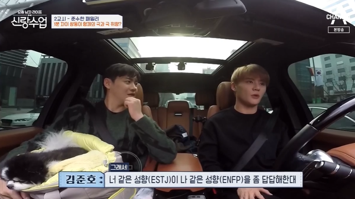 형은 일 때문에 한동안 태국에서 생활할 예정이래요. 근데 준수가 "이왕 결정한 거 빨리가"라고 해서 되게 섭섭했다고 ㅎㅎ 김준수는 시크한 성격인데 형은 반대로 감성적인 성격이라 부딪히는 게 있대요. MBTI 또한 김준수는 ESTJ(엄격한 관리자, 사업가형)인데 형은 ENFP(재기발랄한 활동가, 스파크형)라고. 진짜 외향적인 것만 빼고 정반대 성격이네요.