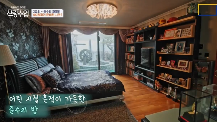 그리고 와우. 부모님 집도 너무 좋음! 지하에는 시아준수 앨범을 비롯해 팬들 선물로 가득찼네요. 부모님이 버리지 않고 다 모아두신 대요. 2층으로 올라가면 어린 시절 흔적이 가득한 김준수 방이 그대로 있어요.