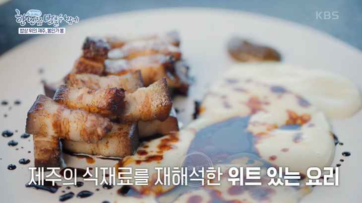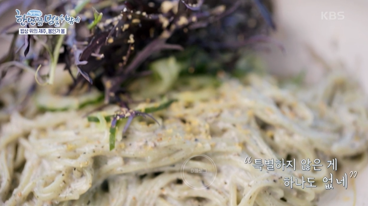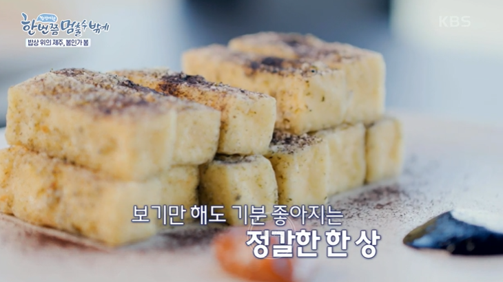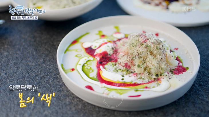꼭 예약이 필요한 식당 청굴물 앞 식당은 '넘은 봄'이에요. 제주 음식 연구소라고 온전한 제주 음식을 맛볼 수 있어요. 푸른 바다를 배경으로, 경치도 너무 좋네요. 그리고 음식 컬러가 왜 이렇게 예쁜가요. 보기만 해도 기분 좋아지는 정결한 한 상이에요.