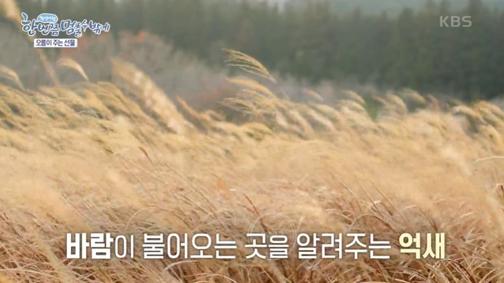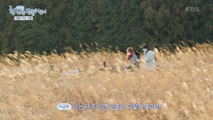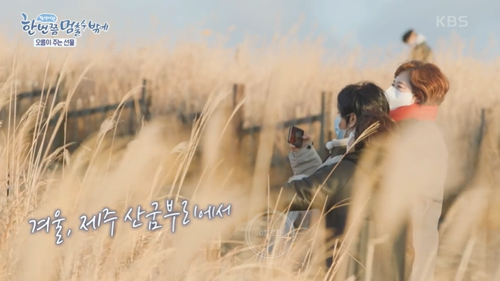 이선희, 윤도현, 이금희가 갈대밭을 거닐던 오름은 '산굼부리'예요. 저는 안개 낀 날 가서 풍경이 하나도 안보였던 나쁜 기억이 있는데 갈대가 있으면 이렇게나 예쁘네요. 제주 갈대 명소 으뜸이네요. 방송에서 윤도현이 찍은 영상이 나왔는데 아무 소리 없이 바람소리만 전해졌는데 너무 좋았어요.