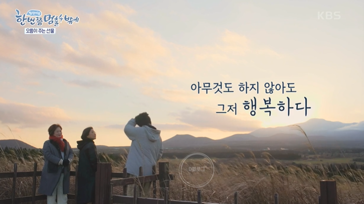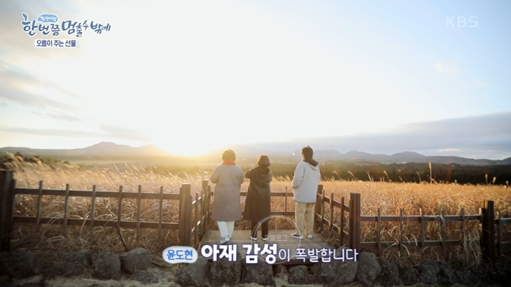 특히 여기는 해 질 때 가야 예술이네요. 갈대 감성이 더 짙어져요. 자막 그대로 '제주가 좋다' 저는 일몰만 보면 어떨 때 그냥 눈물이 나와요. 너무 아름다워서. 그 감정이 영상에서도 그대로 전해져서 뭉클했어요. 윤도현도 가끔 혼자 오름을 간대요. 그때마다 오름 위에서 문득 행복하다는 감정을 느꼈다고 하네요. 아무것도 하지 않았는데 그저 행복했다고. 시시각각 변해가는 제주의 풍경을 바라보면 누구나 다 그런 감정을 느끼지 않을까 싶어요.
