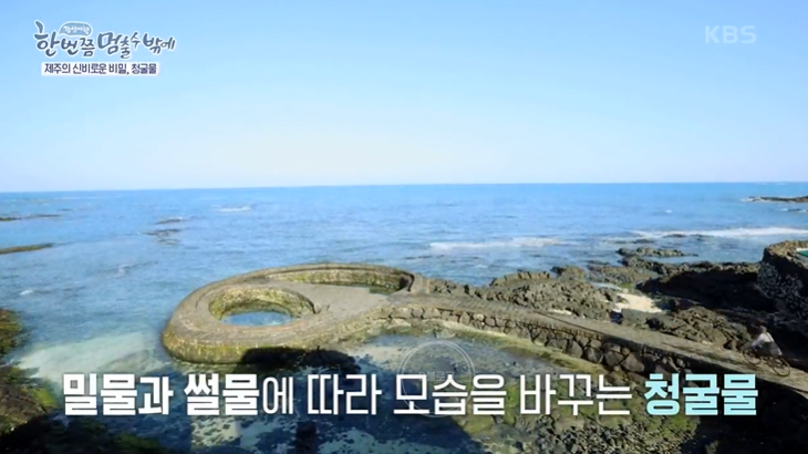 고대 유적지 온 듯한 제주도의 신비로운 장소 청굴물. 청굴물은 용천수(지하수)가 나오던 동네 청굴동에서 이름을 따왔대요. 과거 제주도민들이 물찜질을 하던 장소라고 하네요. 실제 방울이 뽕뽕 올라오는 것이 용천수가 샘솟는다고 하네요.