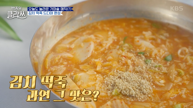 떡국 끓이고 남은 떡을 활용한 백종원표 떡죽 레시피가 공개됐어요! 멸치 육수에 떡, 밥, 김치면 끝이라고! 고춧가루, 국간장으로 간을 한대요.