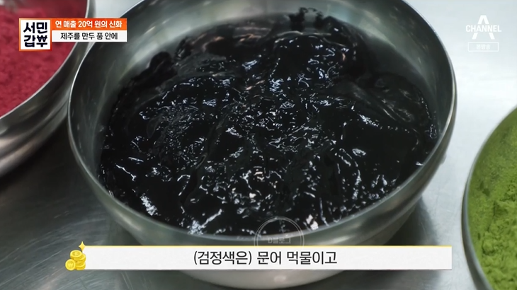 만두에 구하기 힘든 작은 전복을 넣는 것도 특이하네요. 통전복 만두를 베어 물었을 때 입에서 느껴지는 놀라움에 깜짝 놀랐다고! 그래서 초록 만두에 전복을 넣고 있대요. 검정 만두에는 통 큰 문어가 쏙 들어가네요. 갑부는 만두 특허를 받았기 때문에 똑같이 만들어 팔면 안 된대요!