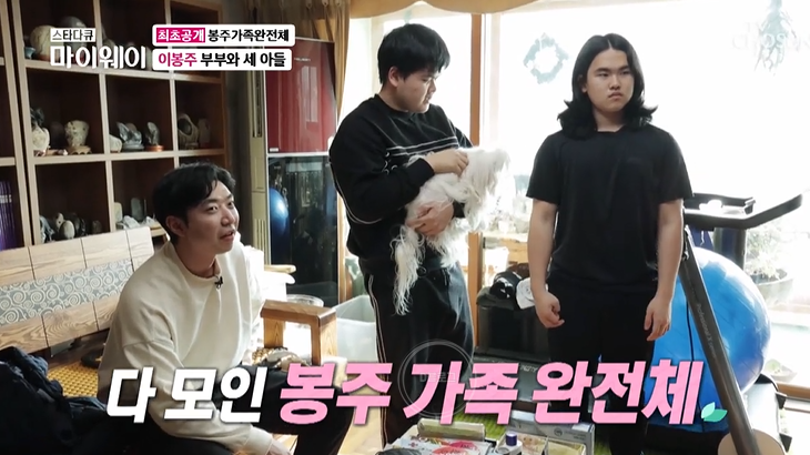아내 김미순은 지난 방송에서 조카 입양사실을 고백한 바 있어요. 조카는 김미순 친오빠 아들이에요. 13년 전 큰 오빠 아들을 입양한 것이죠. 친오빠가 불의의 사고를 당했다고 하네요. 이봉주는 처조카를 첫째 아들이라고 소개했어요. 그리고 자신의 아들 둘을 두고 있어요. 셋째 이승진 군은 장발을 고집하는 이유를 묻자 "아빠 허리 나을 때까지만 기르기로 했어요" 남다른 효심이네요.