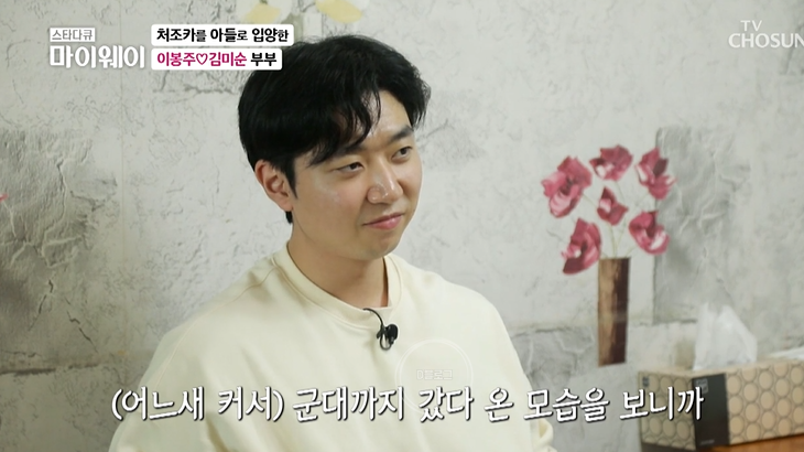 이봉주는 처조카에 대해 "있는 거 자체만으로도 든든하고 다른 사람 아니고 가족이잖아요. 원래 친척 집에 온 것처럼 자연스럽게 우리 가족 품으로 들어오지 않았나 생각해요" 어느덧 군대까지 다녀온 첫째 아들이 의젓하고 너무 좋다는 이봉주.